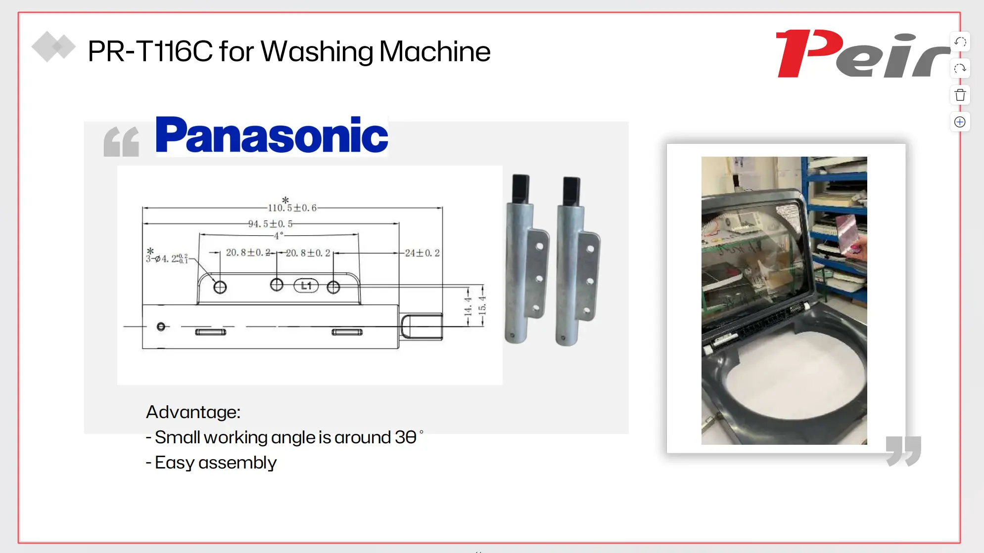 Premium manufacturers demand this level of engineering. Panasonic heavily adopts the PR-T116C. They use it for their top-tier, heavy-cover washing machines. It resolves spatial limits without sacrificing power. Upgrade your compact appliance designs with the Peir PR-T116C.